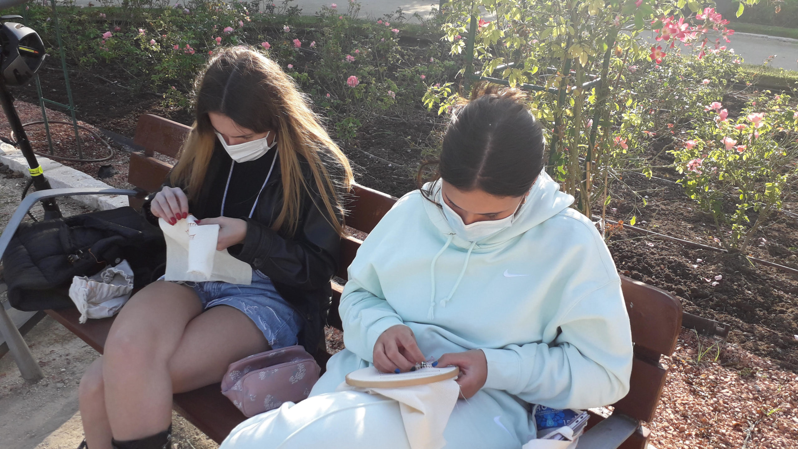 L’alumnat de l’assignatura optativa Brodat i Il·lustració de la EASD València ix a brodar als Jardins de Vivers.