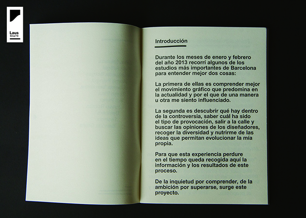 Este proyecto final de estudios, investiga sobre estas y otras cuestiones relacionadas con la actualidad gráfica y con la nueva estética New Ugly. El proyecto se desarrolló en Barcelona durante ocho meses, desde el final del año 2012 hasta mediados del 2013, tiempo que sirvió para hacer una investigación teórica que sentara las bases del New Ugly y una investigación de campo hablando con algunos de los diseñadores que están dentro del diseño de vanguardia. Malva Sawada y Margarida Borges (Clase-Bcn), Aleix Artigal, Jaume Pujagut (Grrr), Ariadna Serrahima y Tiago Pina (Todojunto), Pol Pérez y Josep Román (Folch Estudio), Devicers, Toormix y Bendita Gloria. Los resultados se recopilaron en este proyecto editorial, donde el concepto de diseño está basado en la pureza de la forma. Se interpreta el estilo New Ugly desde el conocimiento, utilizando los mínimos elementos posibles, trabajando la mancha tipográfica, el papel y la economía de elementos gráficos, hasta conseguir un objeto bello, funcional, honesto y económico.Actualmente, el libro está a la venta en las librerias más importantes de Barcelona y Madrid. El proyecto fue premiado en graffica.info y el archivo municipal de Barcelona ha guardado un ejemplar como huella de la actualidad. Hasta la fecha, se han vendido unos ochenta ejemplares.»