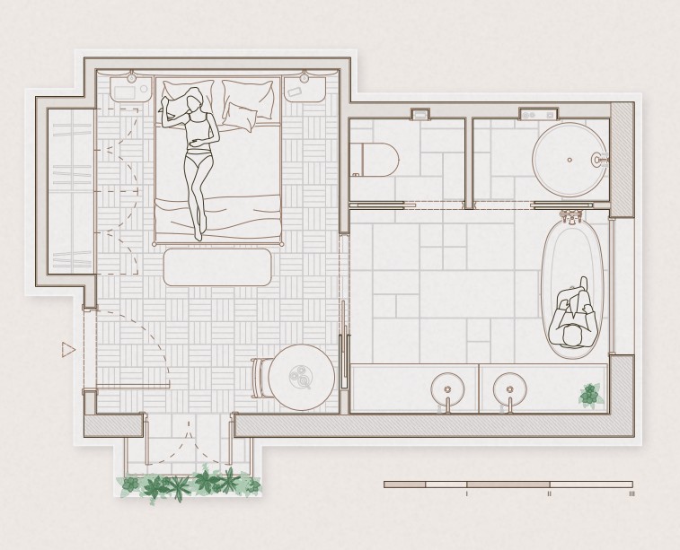 El proyecto recupera el ritual del baño como un acto de reconexión con lo esencial, honrando la herencia de quienes cultivaron la tierra y construyeron comunidad desde el trabajo compartido. La geometría del paisaje se traduce en una gran vidriera que articula el espacio y transforma la luz en una experiencia casi ritual.La materialidad, basada en productos Inardi de acabado artesanal y tonalidades neutras, construye una atmósfera serena, tradicional y atemporal. L’instant présent es un interiorismo humano y cercano, un homenaje a la tierra, al gesto artesanal y al valor de habitar el ahora.