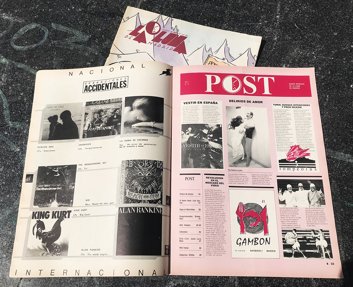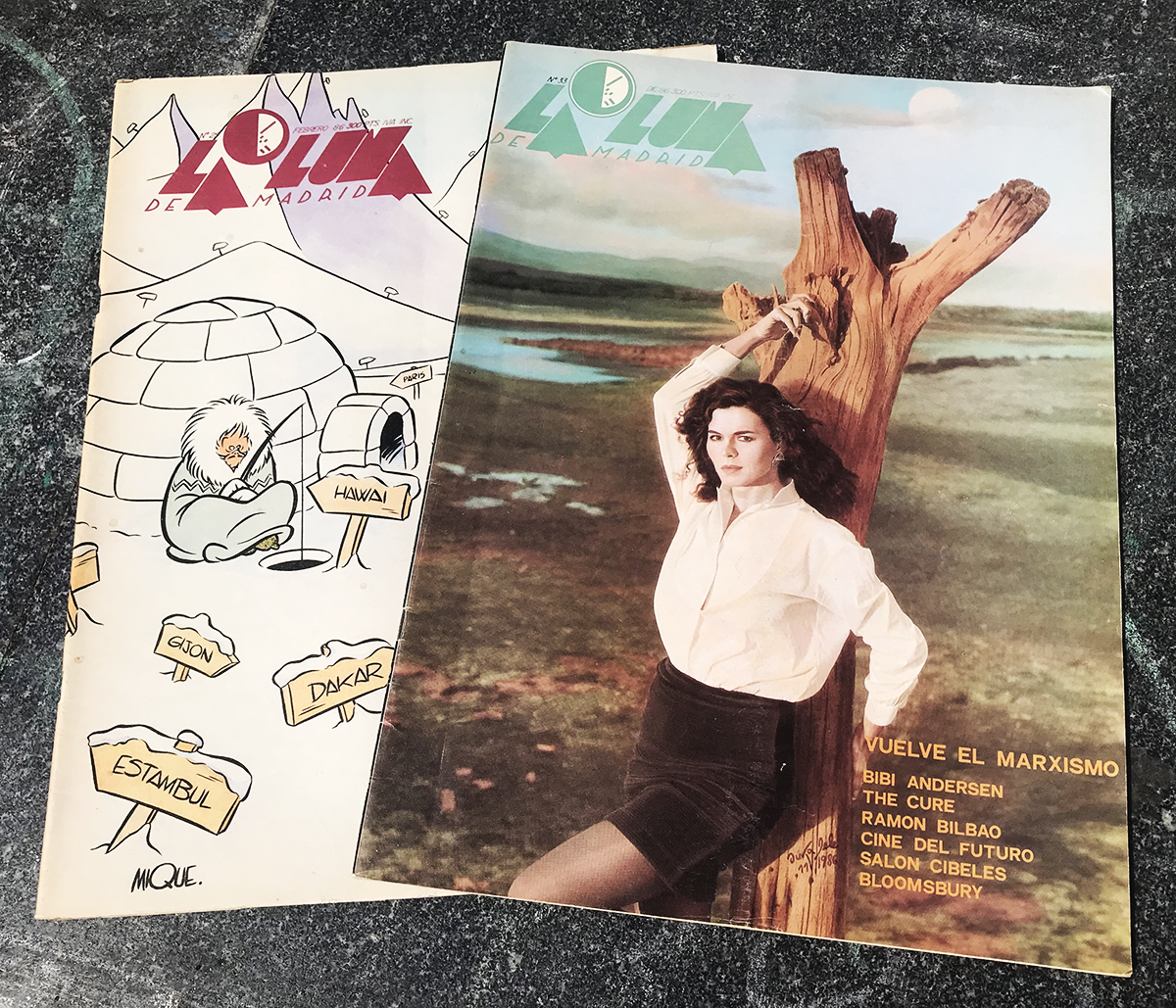 Otra de las publicaciones que podemos encontrar en el CDD es, La Luna de Madrid. Se publicó en Madrid de 1983 hasta 1988. Revista de vanguardia donde se experimenta con la informalidad del fanzine y la libertad de una revista muy iconoclasta donde en cada edición, podemos ver la muestra de nuevas formas de expresión artística como el cómic, la fotografía, el diseño gráfico, la literatura, la filosofía, la moda, la música, el teatro, las artes plásticas y la arquitectura. Una manera de hacer que responde a una época de despertar creativo de esa España de los ochenta donde revistas como esta servían para dar voz a un movimiento que marcaría la década.