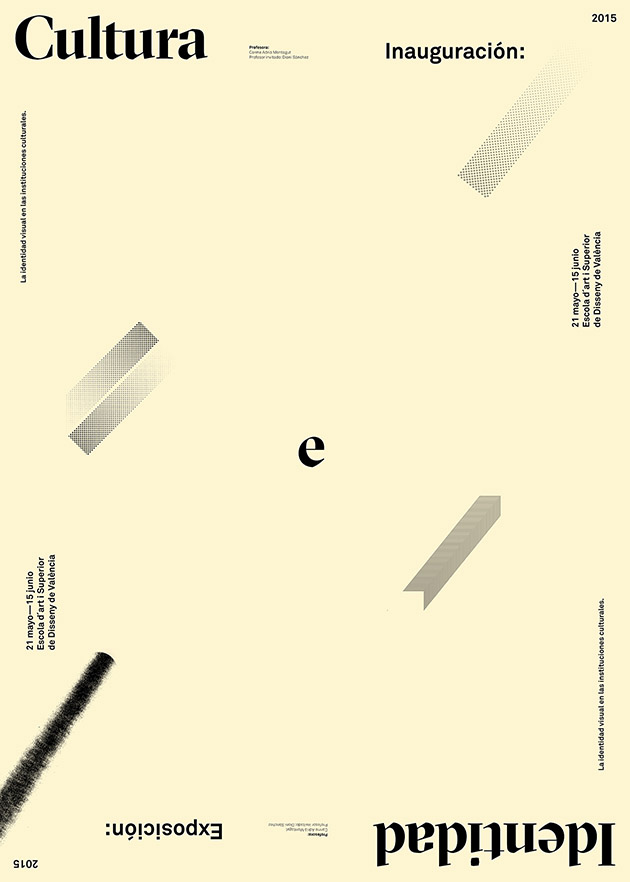 «Cultura e Identidad. La identidad visual en las instituciones culturales, es una asignatura impartida por Carme Adrià en la Escola d´Art i Superior de Disseny de València durante el 2014/2015, y en la que ha colaborado Dioni Sánchez como profesor invitado. La exposición es una síntesis conceptual de un proyecto real realizado en las aulas y que ha consistido en generar la comunicación visual de la exposición La persecución de un Rayo Verde de Fermín Jiménez Landa, comisariada por César Novella y que tendrá lugar en La Gallera en 2016″.
