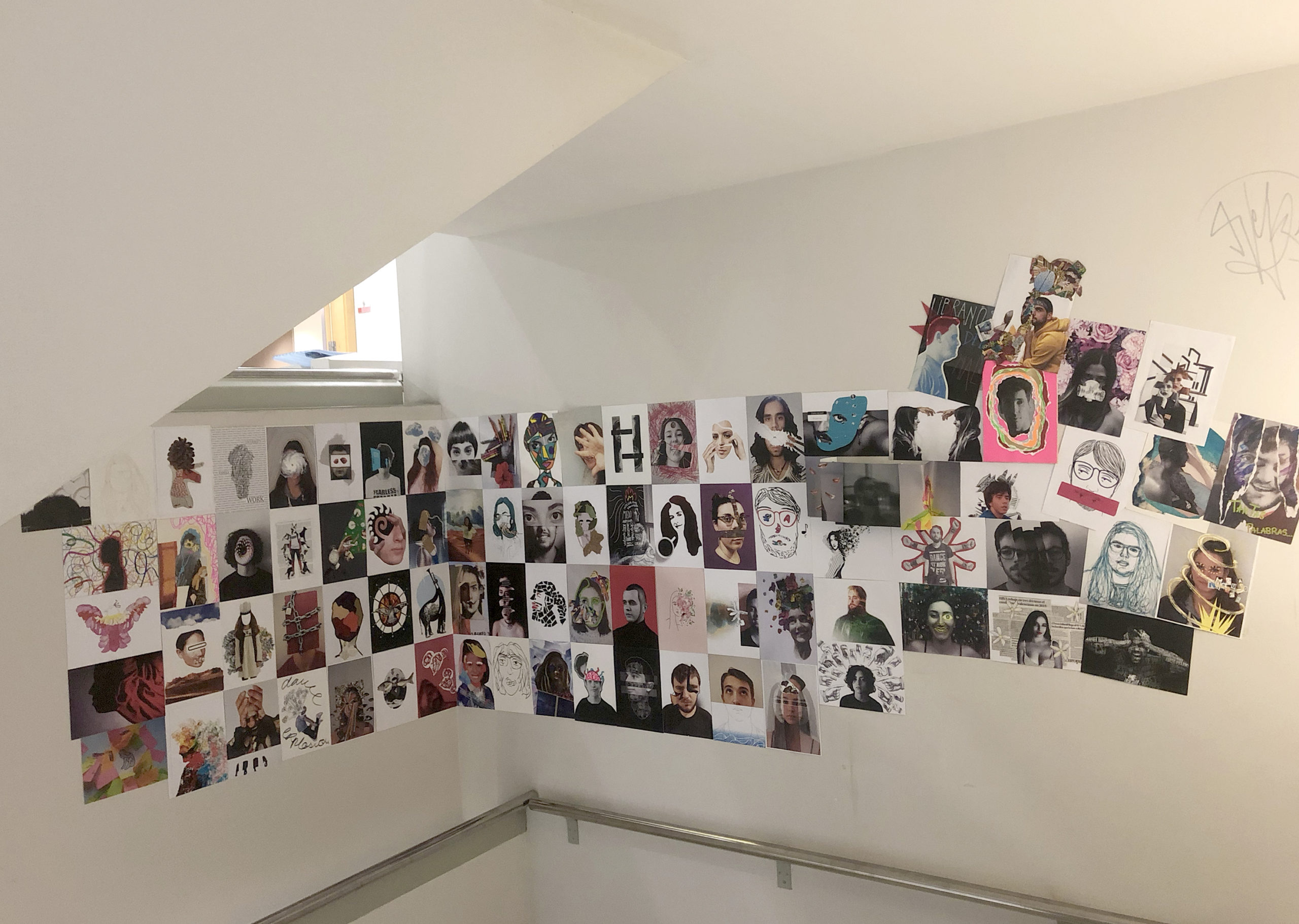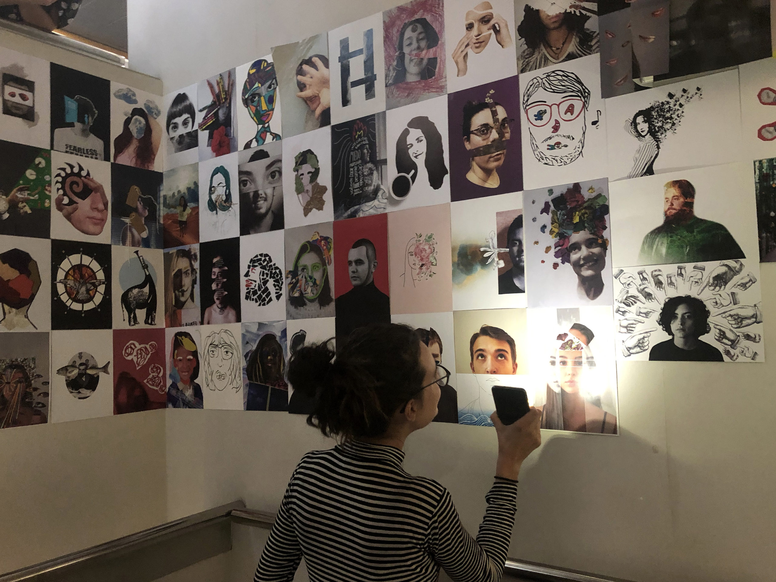 En ella exponen un mural con bocetos que forman parte de un ejercicio cuyo objetivo es experimentar la representación del rostro humano desde diversos puntos de vista: formal, psicológico, emocional, espiritual, etc.