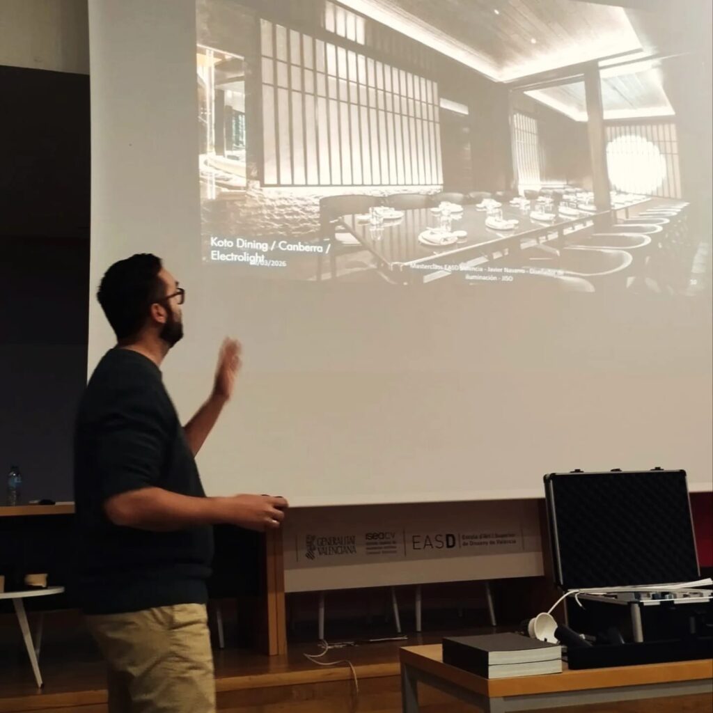 El pasado 25 de marzo, la escuela contó con la visita de Javier Navarro de JISO Iluminación, quien impartió una charla en el Salón de Actos de Velluters dirigida a nuestro alumnado de primero y segundo curso del Grado en Diseño de Interiores.