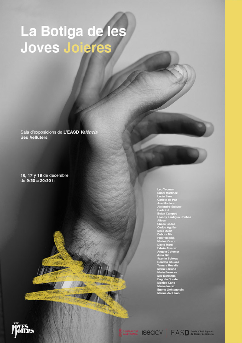 Los alumnos de la asignatura «Taller de Experimentación Gráfica», segundo curso, del grado de Diseño Gráfico, han sido los encargados este año, de realizar la comunicación para la XI edición de la Botiga dels Joves Joiers -para esta ocasión, La Botiga de les Joves Joieres-.